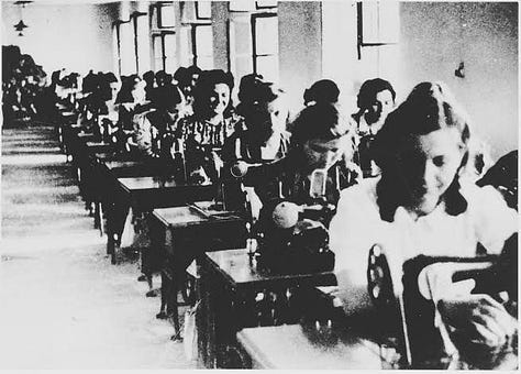 Attributing to the point earlier, the Jews from Eastern European ghettos were largely unskilled; programmes were launched to teach them Sewing, carpentry, baking, reading, and writing - these were subsequently branded as “forced labour” despite the work environment inside the camps featuring a learning or trade school setting, not a factory setting. Factories had conveyor belts and other tools optimised for mass production and efficiency; a better parallel to this is “Paid Prison Labour Program ” which is a practice prominent throughout the world, definition of Paid Prison Labour according to Wikipedia is: