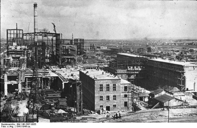 After the training of Jews was completed in basic tradecraft, the real causes as to why Auschwitz was such a big facility in terms of size was that it was strategically positioned near the “IG-Farbenwerke”, a factory that produced rubber materials. Jews were employed as paid full-time workers at this factory: