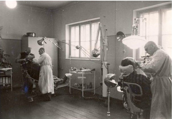 Above: Dentists taking care of Jews, the one on the right is clearly wearing prisoner fatigues.