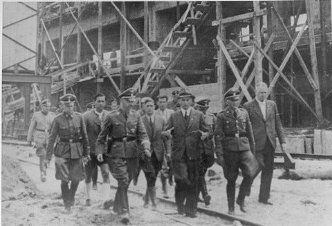 Above: Heinrich Himmler inspecting IG-Farbenwerke