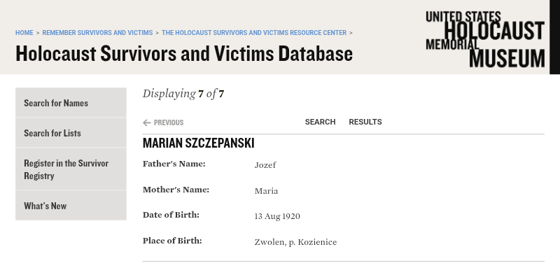 Above: Szczepanski in USHMM database as a Polish - Jewish political prisoner